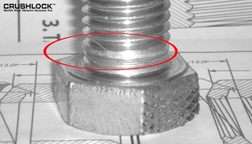 A: Crushlock Permanent Nut is the only nut fastener that does not use contact friction for vibration resistance. Instead of friction, Crushlock Permanent Nut uses permanent internal pressure. Since the internal pressure is permanent, vibration is no longer a factor. It is physically impossible for a properly installed Crushlock Permanent Nut to vibrate loose.