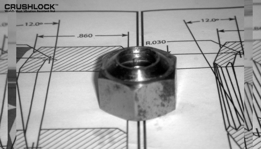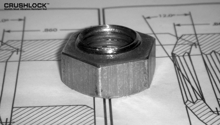 The Crushlock Permanent Nut was initially named the Arnold Permanent Nut, in honor of the inventor. The journey began in March 2011 when Crushlock Permanent Nut inventor, Mr. Arnold, was watching a short Japanese news brief about a fastener company in Japan. This company made what is advertised as the world's most vibration resistant two-piece locking nut. During an interview, the owner/inventor stated he has been trying to invent a one-piece nut that is not affected by vibration for thirty years, but was unable to do so. This one-piece nut had interest from the aerospace companies because it would save weight and not loosen.